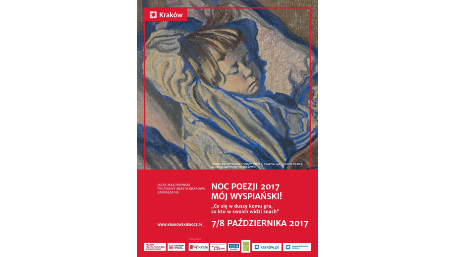 Miłośnicy poezji będą mogli wybierać spośród wydarzeń, które już od g. 10 rano będą odbywać się nie tylko w centrum Krakowa, ale także w Nowej Hucie, na Rynku Podgórskim i Kazimierzu. Aż do g. 2 w nocy na ścianie kamienicy przy ul. Brackiej 1 wyświetlane będą wiersze nagrodzone w ogólnopolskim konkursie na utwór zainspirowany postacią i dziełami Stanisława Wyspiańskiego.