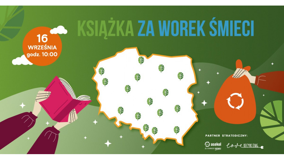 W minioną niedzielę rozpoczęła się rejestracja do tegorocznej edycji akcji „Książka za worek śmieci”. W tym roku odbędzie się ona 16 września w 16 wojewódzkich miastach Polski: Warszawie, Krakowie, Łodzi, Wrocławiu, Poznaniu, Gdańsku, Katowicach, Szczecinie, Bydgoszczy, Lublinie, Olsztynie, Białymstoku, Opolu, Rzeszowie, Gorzowie Wielkopolskim i Kielcach.