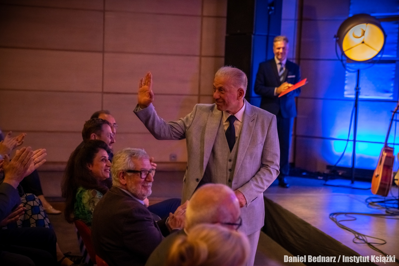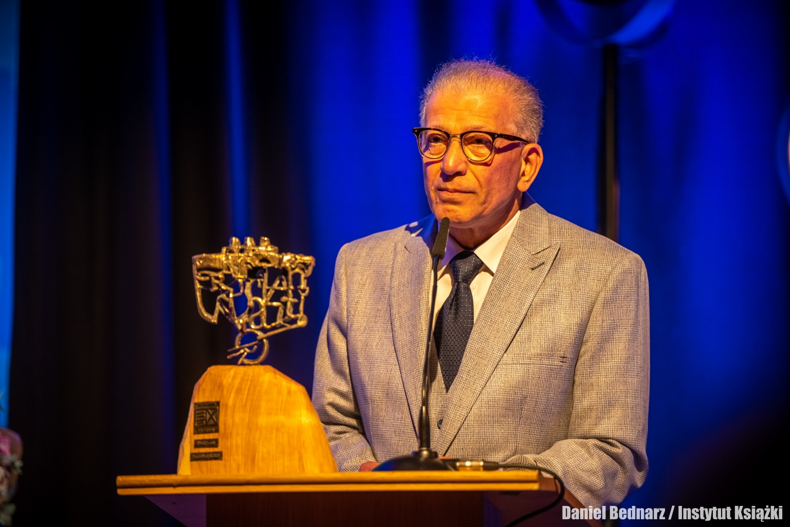 Po wygłoszeniu laudacji na scenie pojawił się laureat, który odebrał wykonaną przez Łukasza Kieferlinga statuetkę z rąk Dyrektora Instytutu Książki Dariusza Jaworskiego.