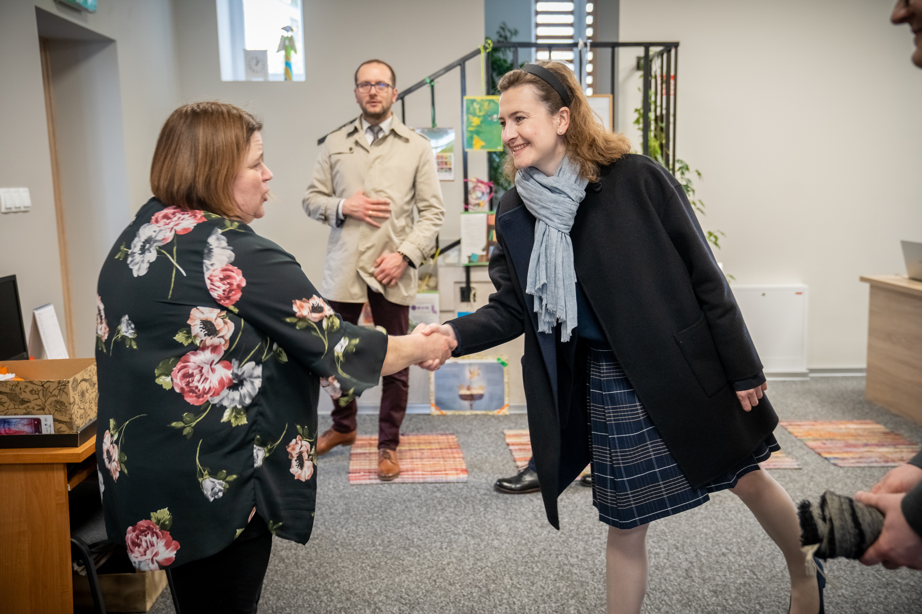 Delegacja Instytutu z dyrektorem Dariuszem Jaworskim oraz zastępcą dyrektora ds. organizacyjno-finansowych Robertem Kaźmierczakiem spotkała się z przedstawicielami władz samorządowych, m.in. burmistrzem Dąbrowy Białostockiej Arturem Gajlewiczem, burmistrzem Sokółki Ewą Kulikowską, zastępcami burmistrza – Adamem Kowalczukiem i Adamem Juchnikiem, pełnomocnikiem Burmistrza Sokółki Antonim Stefanowiczem, dyrektorem Miejsko-Gminnego Ośrodka Kultury w Dąbrowie Białostockiej Maciejem Sulikiem oraz Joanną Bienasz, dyrektorką Biblioteki Publicznej w Sokółce.