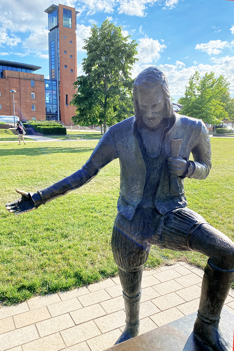 Pomnik wykonany przez brytyjskiego rzeźbiarza Andrew Lilleya można oglądać w ogrodach domu Anne Hathaway, w którym dzieciństwo spędziła późniejsza żona Szekspira.