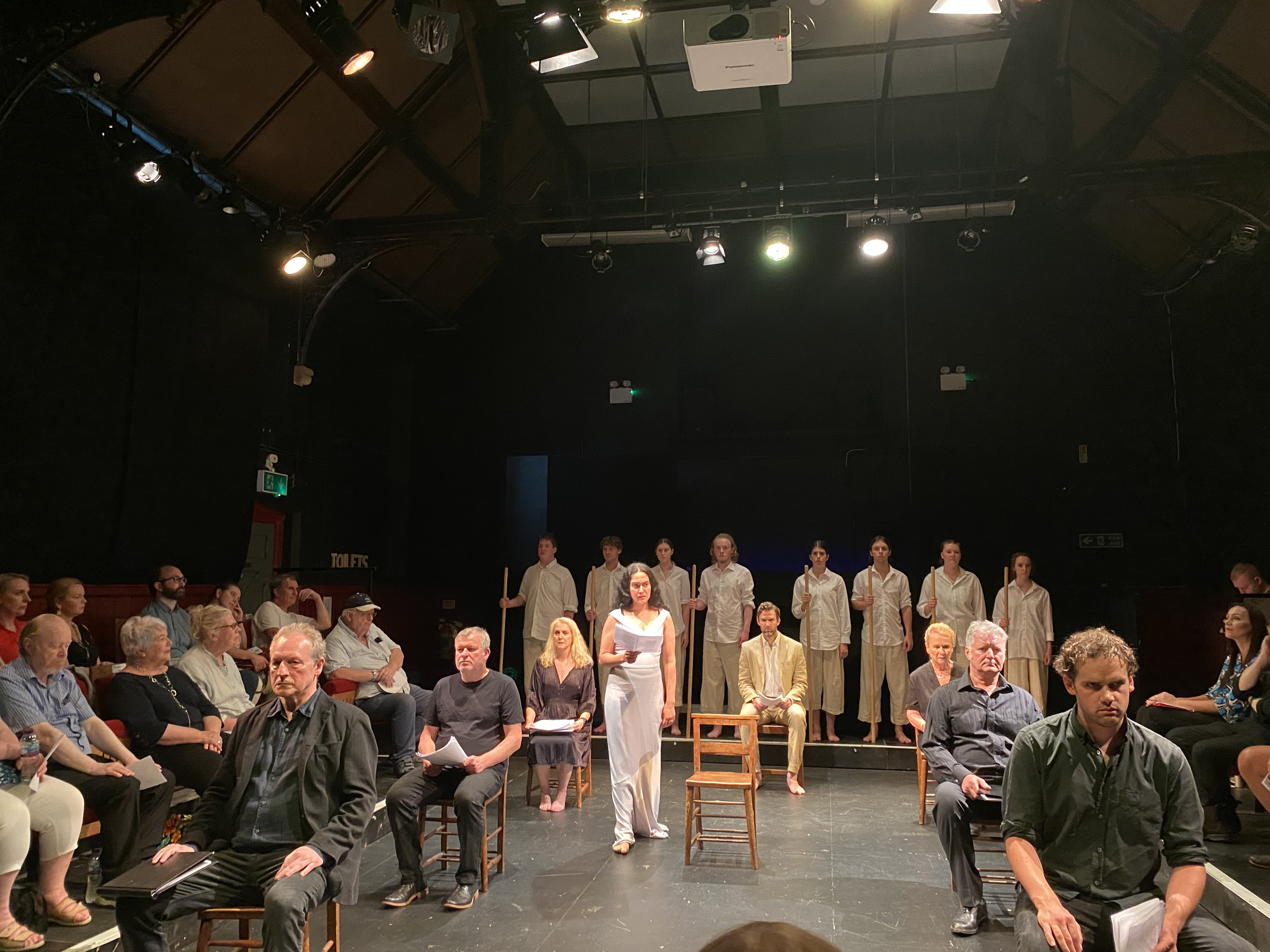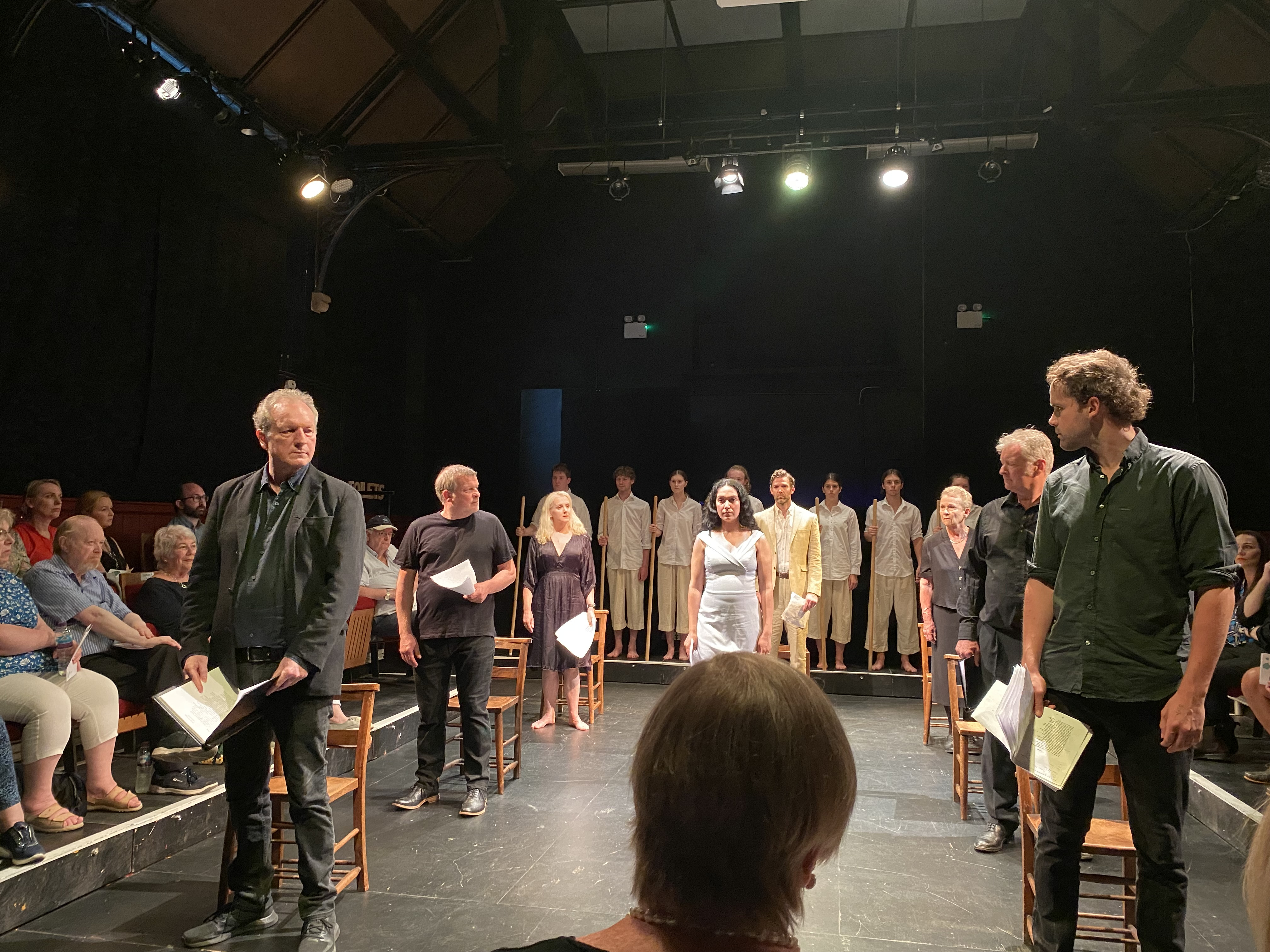 Po występie zorganizowano dyskusję z udziałem Morella, Charlesa Kraszewskiego, aktorów Royal Shakespeare Company. Całość moderował prof. Tony Howard z Warwick University. Jak zauważyła Marta de Zuniga, dyrektorka Instytutu Kultury Polskiej w Londynie: „Morell pracował już wcześniej z tekstami Jana Kochanowskiego, w zeszłym roku reżyserował Treny i zinterpretował je w kluczu współczesnym – relacji między ojcem a córką, ojcem a matką, ojcem a żoną”.