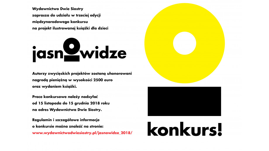 Wydawnictwo Dwie Siostry zaprasza do udziału w trzeciej edycji międzynarodowego konkurs na projekt ilustrowanej książki dla dzieci, Jasnowidze 2018. Tegoroczna edycja otrzymała dofinansowanie ze środków Ministerstwa Kultury i Dziedzictwa Narodowego pochodzących z Funduszu Promocji Kultury.