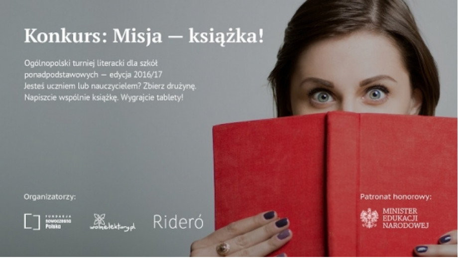 Konkurs: Misja – Książka! to literacki turniej pod honorowym patronatem Ministra Edukacji Narodowej, w którym uczniowie szkół gimnazjalnych i ponadgimnazjalnych, pod opieką nauczycieli, napiszą i przygotują do wydania własne zbiory opowiadań.
