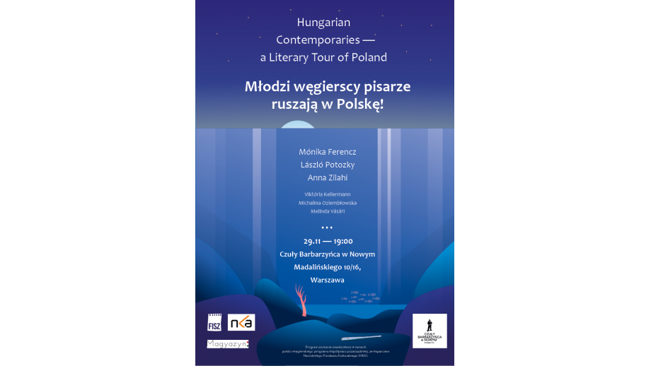 Spotkanie literackie odbędzie się w ramach projektu Hungarian Contemporaries - a literary tour of Poland w Czułym Barbarzyńcy w Nowym 29 listopada, o godzinie 19.