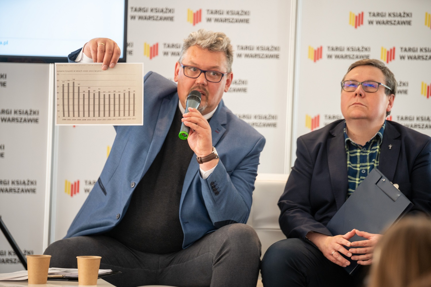 Panel rozpoczął się od pytania do Romana Chymkowskiego, który miał rozwiać wątpliwości na temat metodologii badań Biblioteki Narodowej. Wyjaśnił on, że w badaniu nie mierzy się czytania w ogóle, ale jedynie czytanie książek, zarówno w formie papierowej, jak i elektronicznej. Stwierdził on także, że zmniejszające się czytelnictwo w Polsce ma związek ze światowym trendem. Podobne badania w innych krajach różnią się metodologią, ale jedno jest pewne – nigdzie na świecie poziom czytelnictwa nie rośnie. W późniejszej części panelu jego myśl rozwinął Tomasz Kołodziejczak, który opowiadał o tym, że potrzeba fabuły jest w dzisiejszych czasach zaspokajana także przez szereg innych mediów. Literatura nie konkuruje, jak kiedyś, sama ze sobą, ale z filmami, grami, streamingami i szeregiem innych mediów – udowadniał.
