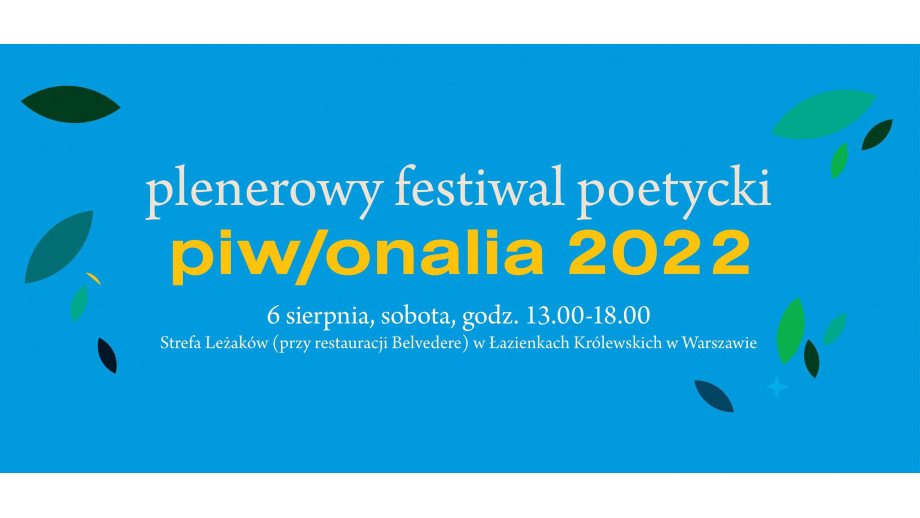 PIW/onalia poprowadzi Anna Piwkowska, poetka, eseistka oraz redaktorka w Państwowym Instytucie Wydawniczym. Wiersze różnych autorów przeczyta aktor Dariusz Wnuk. Wszystkie wydarzenia odbędą się w Strefie Leżaków w Łazienkach Królewskich w Warszawie (obok restauracji Belvedere).