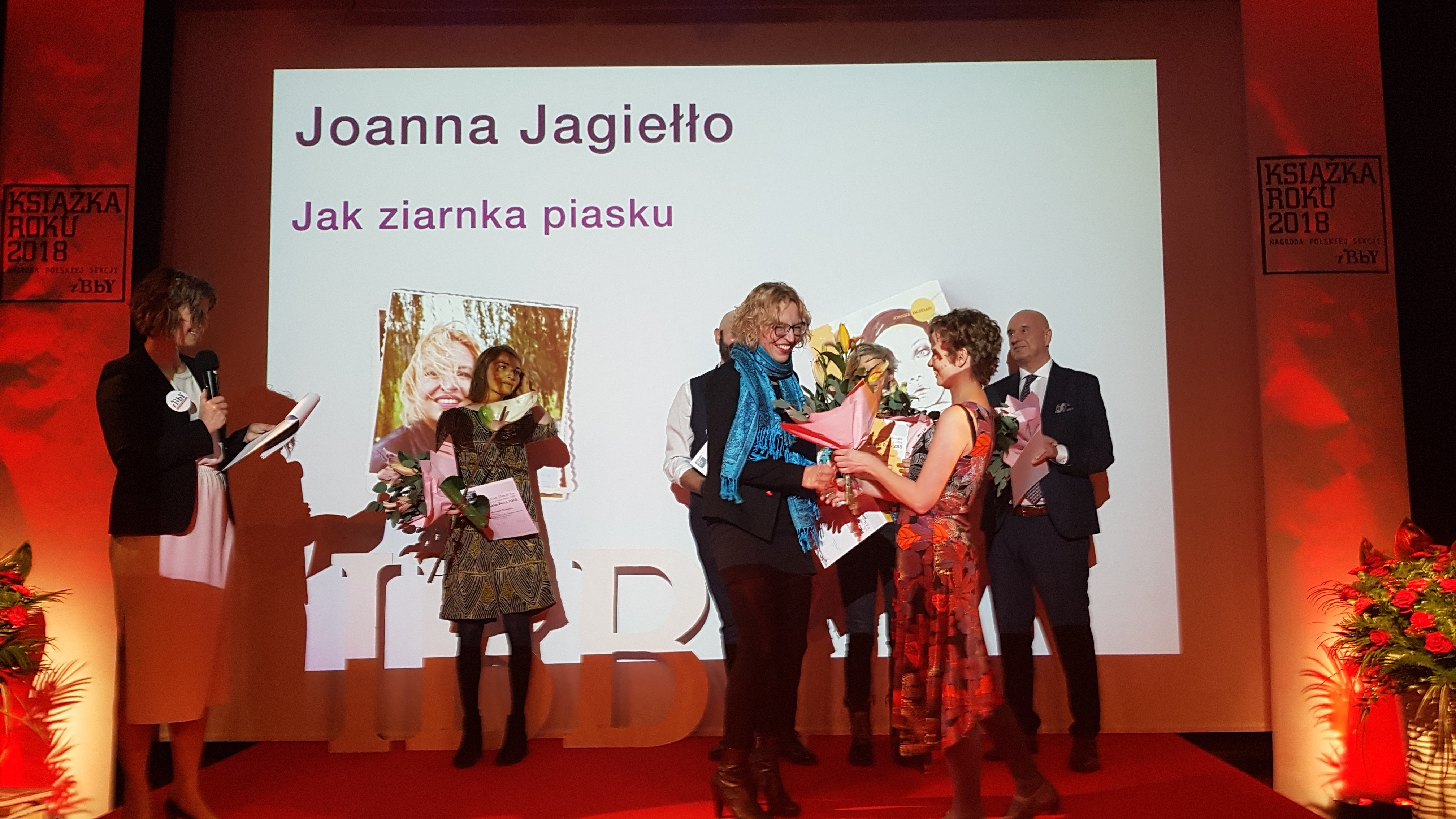 W kategorii literackiej dla młodzieży nagrodzono Jak ziarnka piasku Joanny Jagiełło (Wydawnictwo Nasza Księgarnia). To powieść dotykająca bardzo trudnego tematu samobójstw wśród nastolatków. Nina, „nieobecna” bohaterka książki, nadaje w swoje siedemnaste na Facebooku relację z własnego samobójstwa. Nikt nie rozumie jej czynu, także najlepsza przyjaciółka Niny – Anna, która jest narratorem opowieści.