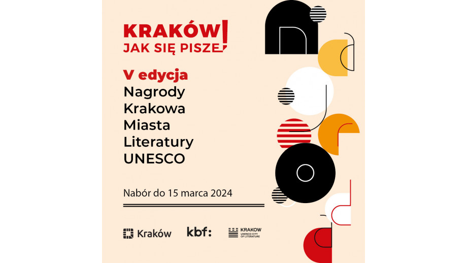 Termin nadsyłania zgłoszeń do piątej edycji Nagrody Krakowa Miasta Literatury UNESCO upływa 15 marca 2024 roku. Ogłoszenie laureatów/laureatek nastąpi nie później niż 8 kwietnia 2024 roku.
