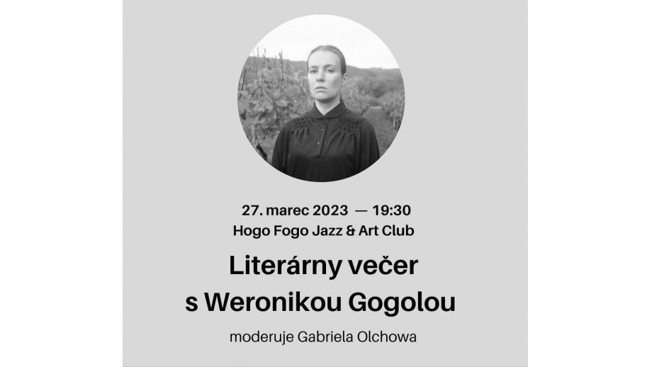 Gościem wieczoru będzie Weronika Gogola, polska pisarka mieszkająca i tworząca na Słowacji, autorka powieści „Po trochu” (2017; słow. Po troškách, Slovart 2021, tłum. Karol Chmel) i „Ufo nad Bratysławą” (2021; słow. Ufo nad Bratislavou, Absynt 2022, tłum. Alexander Horák), tłumaczka z języka ukraińskiego i słowackiego, laureatka Nagrody Conrada (2018).