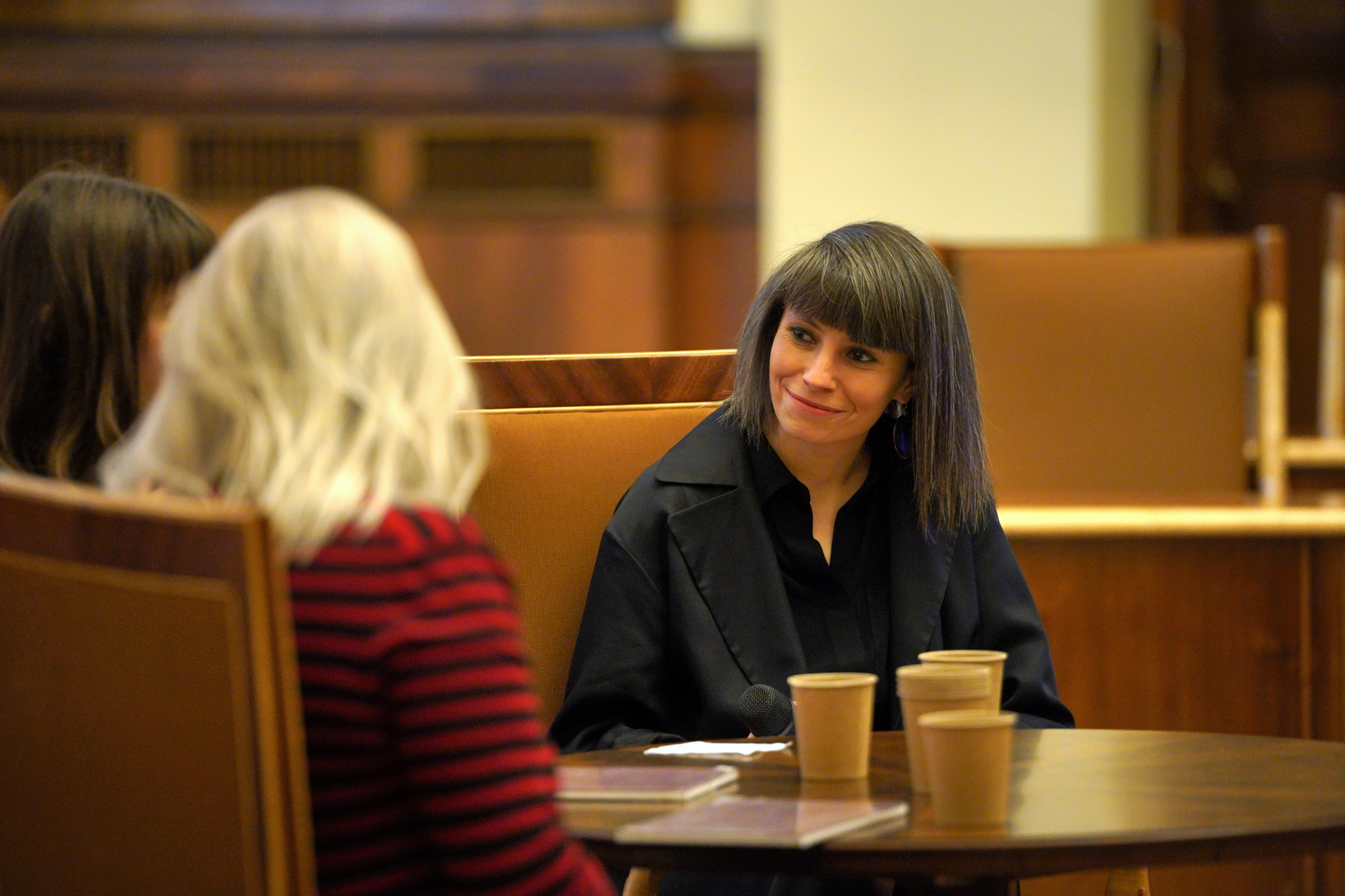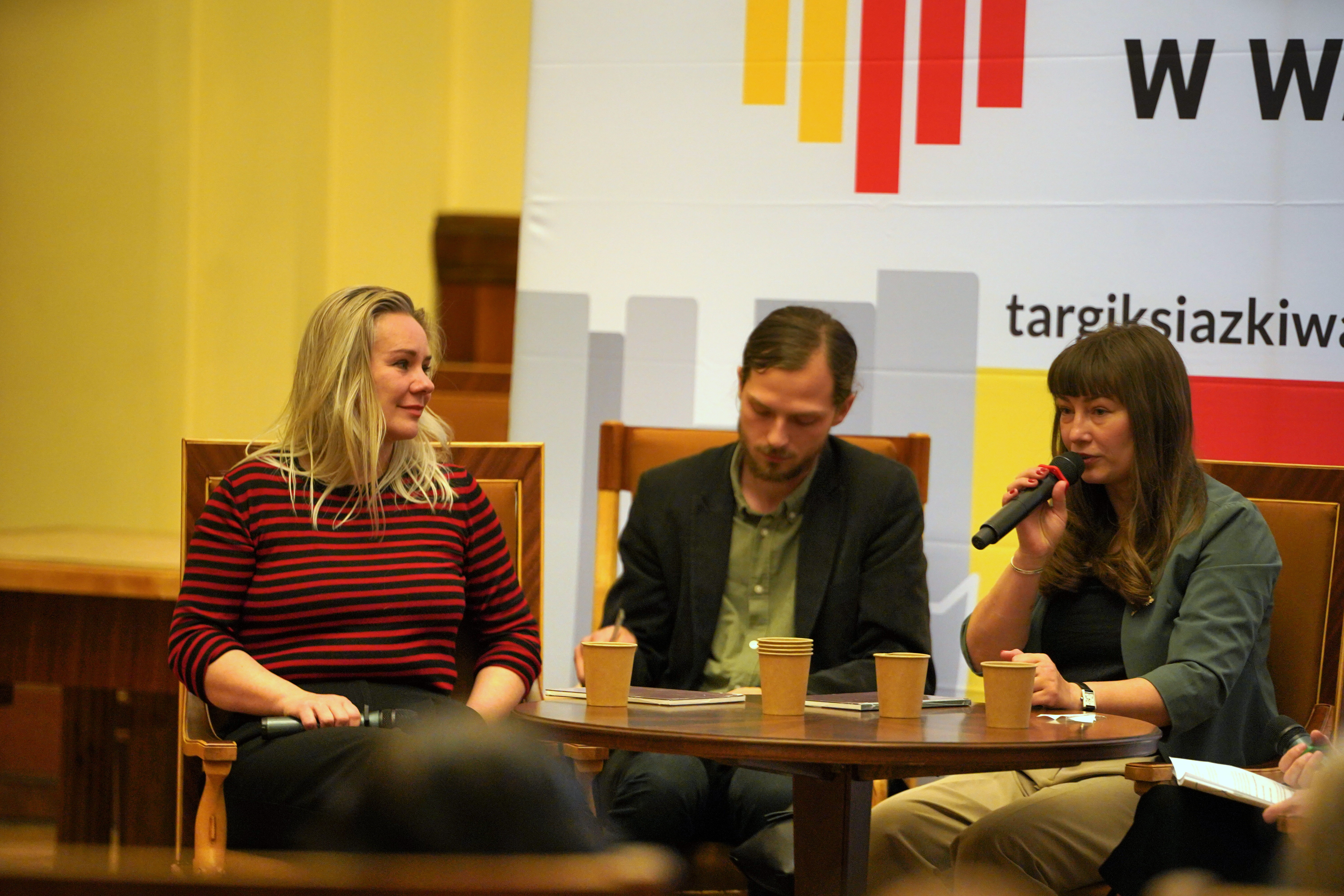 Katarzyna Wójcik pytała autorki m.in. o stereotypy w opowiadaniu o kobiecym doświadczeniu wojny i o sposoby przedstawiania kobiecych bohaterek w literaturze dotykającej tematu wojny.