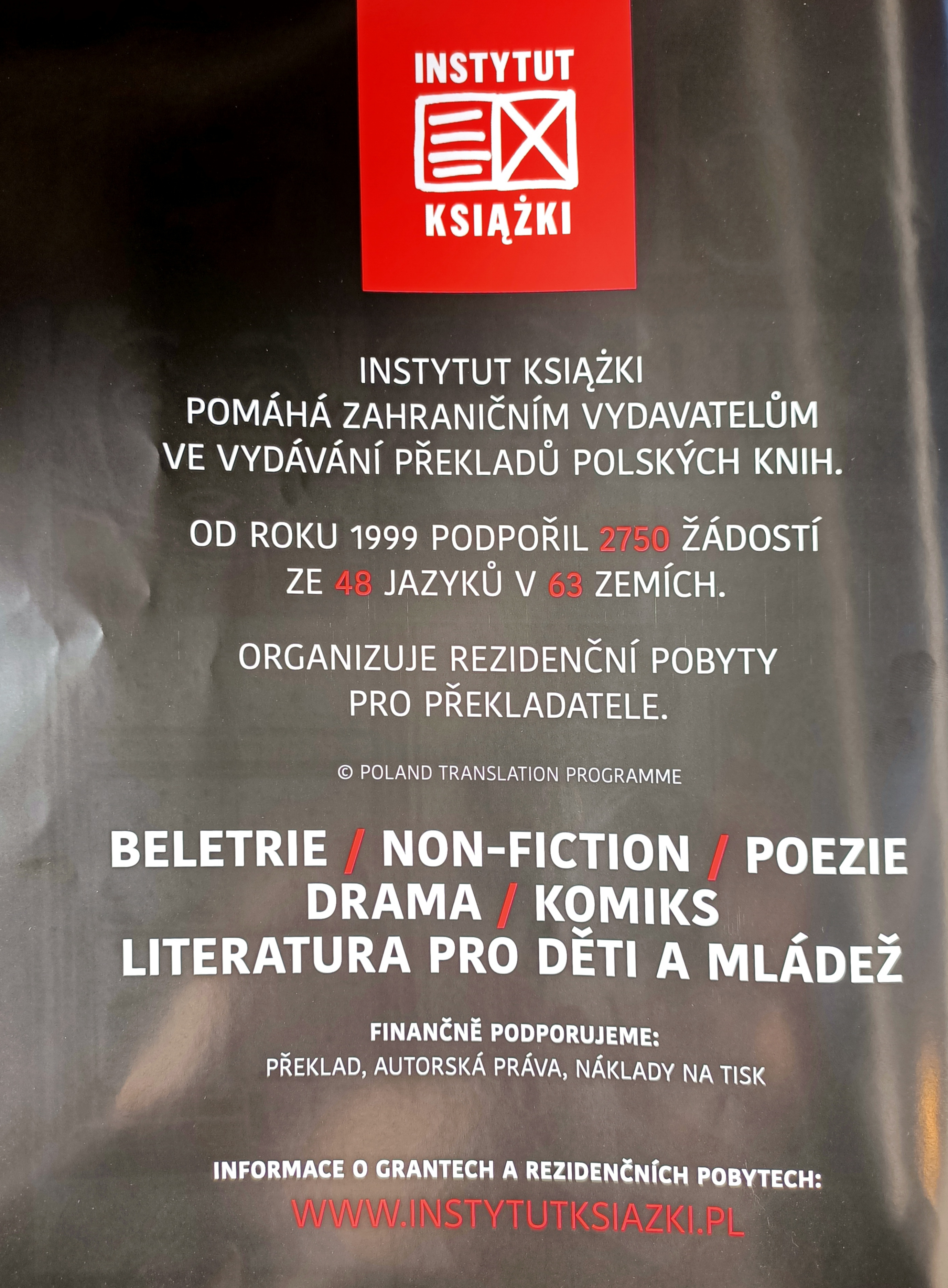 W Pradze na Międzynarodowych Targach Książki Svět knihy na polskim stoisku, współorganizowanym przez Instytut Książki i Instytut Polski w Pradze, odbywa się prezentacja polskich książek przedstawionych w katalogach „New Books from Poland” oraz „Polish Books for Children & Young Adults”.