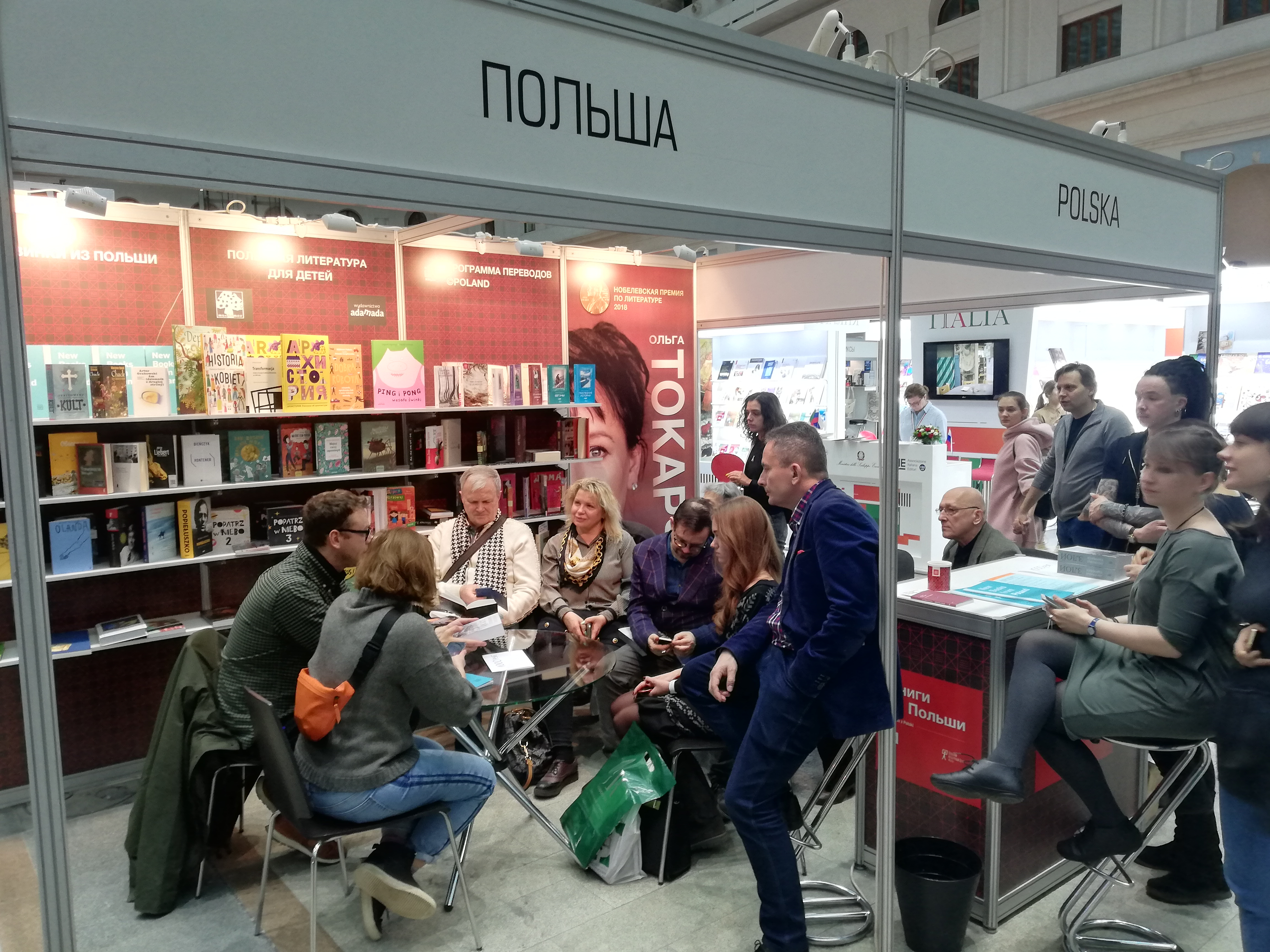 Tradycyjnie polskiemu stoisku towarzyszy na targach program literacki, który w tym roku organizowany jest w całości przez Instytut Polski w Moskwie. Marcel Woźniak i tłumaczka Nina Fiodorowa przypomnieli rosyjskiej publiczności wznowiony niedawno przekład „Złego” Leopolda Tyrmanda w tłumaczeniu Kseni Starosielskiej i Niny Fiodorowej. W ramach Roku Herlinga-Grudzińskiego Irina Krawcowa z wydawnictwa Iwana Limbacha, poetka i dziennikarka Elena Fanajłowa oraz historyk Konstantin Lwow zaprezentowali rosyjski przekład „Innego świata” (godz. 17:00). Na zakończenie tłumaczka i ekspertka IP w Moskwie Anastazja Wiekszina przedstawiła przekład na język rosyjski „Lekcji o Prouście” Józefa Czapskiego oraz dwujęzyczne wydanie jego antologii polskiej poezji wojennej. Wszystkie te wydarzenia odbyły się na polskim stoisku.