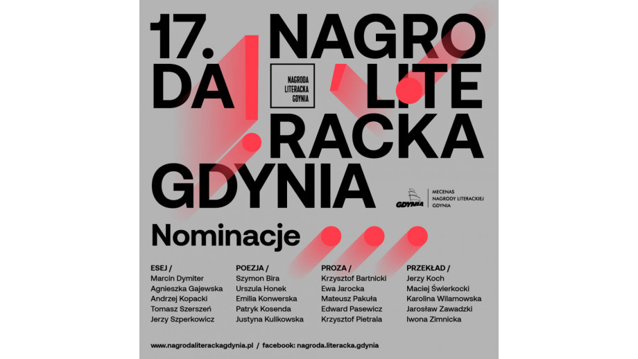 Laureatów 17. edycji Nagrody Literackiej Gdynia poznamy 26 sierpnia. Przyznanie Literackich Kostek jest kulminacyjnym momentem corocznego festiwalu literackiego Miasto Słowa, które w ostatnich dniach sierpnia odbywa się w Gdyni. W tym roku trwać będzie od 24 do 29 sierpnia. Jego program poznamy w lipcu.
