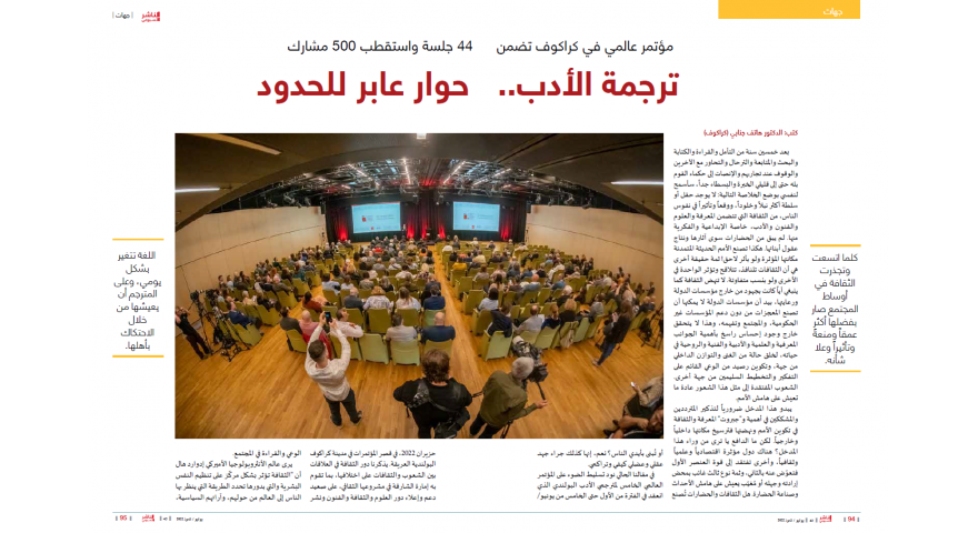 Na łamach miesięcznika „An-Naszir Al-Osbui” ukazała się obszerna relacja z V Światowego Kongresu Tłumaczy Literatury Polskiej pt. „Tłumaczenie literatury: dialog transgraniczny” autorstwa wybitnego tłumacza literatury polskiej na język arabski, Hatifa Janabiego.