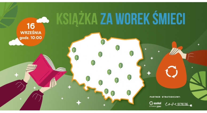 W minioną niedzielę rozpoczęła się rejestracja do tegorocznej edycji akcji „Książka za worek śmieci”. W tym roku odbędzie się ona 16 września w 16 wojewódzkich miastach Polski: Warszawie, Krakowie, Łodzi, Wrocławiu, Poznaniu, Gdańsku, Katowicach, Szczecinie, Bydgoszczy, Lublinie, Olsztynie, Białymstoku, Opolu, Rzeszowie, Gorzowie Wielkopolskim i Kielcach.