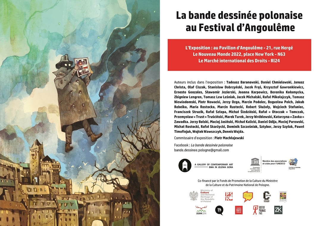 The festival was also accompanied by an exhibition of Polish comics (from classic to contemporary) organised by the Biuro Wystaw Artystycznych (“Artistic Exhibitions Office”) in Jelenia Góra with the support of the Ministry of Culture and National Heritage. It featured, for instance, works from the albums promoted by the Book Institute in their catalogues "New Books from Poland", including Niezwyciężony (“The Invincible") by Rafał Mikołajczak and Andzia by Piotr Mańkowski and Przemysław Truściński.