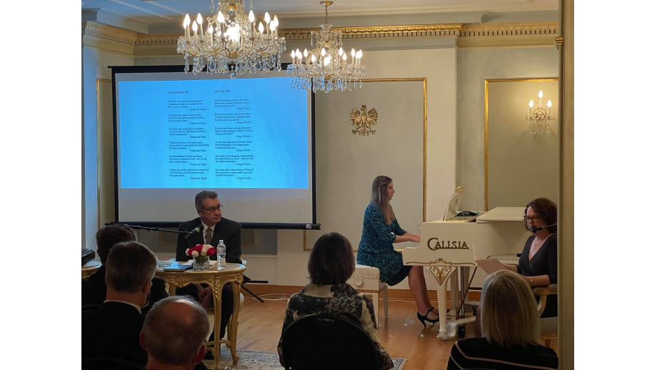 The event was held in a mixed format - with audience participation and live streaming via the facebook page of the Polish Embassy in Ottawa. As part of the provincial regulations governing the organisation of public events, 25 people attended directly, including EU Ambassador Melita Gabrič, Estonian Ambassador Kārlis Eihenbaums, representatives of the diplomatic corps in Ottawa, members of the Polish community, students of the University of Ottawa and Carleton University, and Canadians interested in Polish culture.
