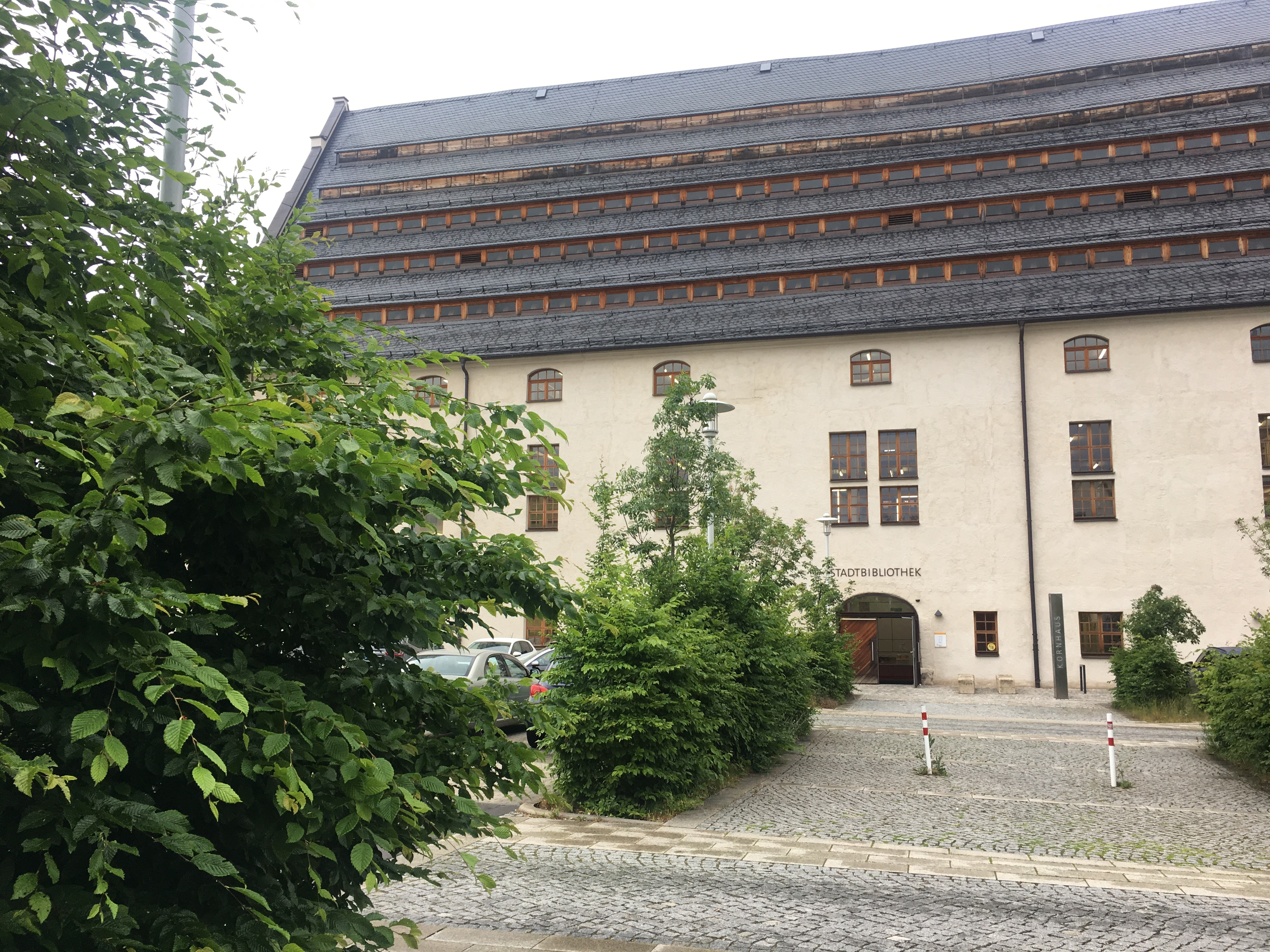 Biblioteka Publiczna w Zwickau znajduje się w dawnym spichlerzu. Niemal zrujnowany budynek przywrócono do użytku i przeznaczono na potrzeby książnicy. Trzypoziomowy gmach posiada wysoki strych (także wielopoziomowy), w konstrukcji którego zachowały się wsporniki i elementy więźby z XV w. Wnętrze budynku zostało przebudowane, przystosowane do potrzeb placówki. Powstała piękna i zarazem funkcjonalna biblioteka o powierzchni 3,7 tys. m2.
