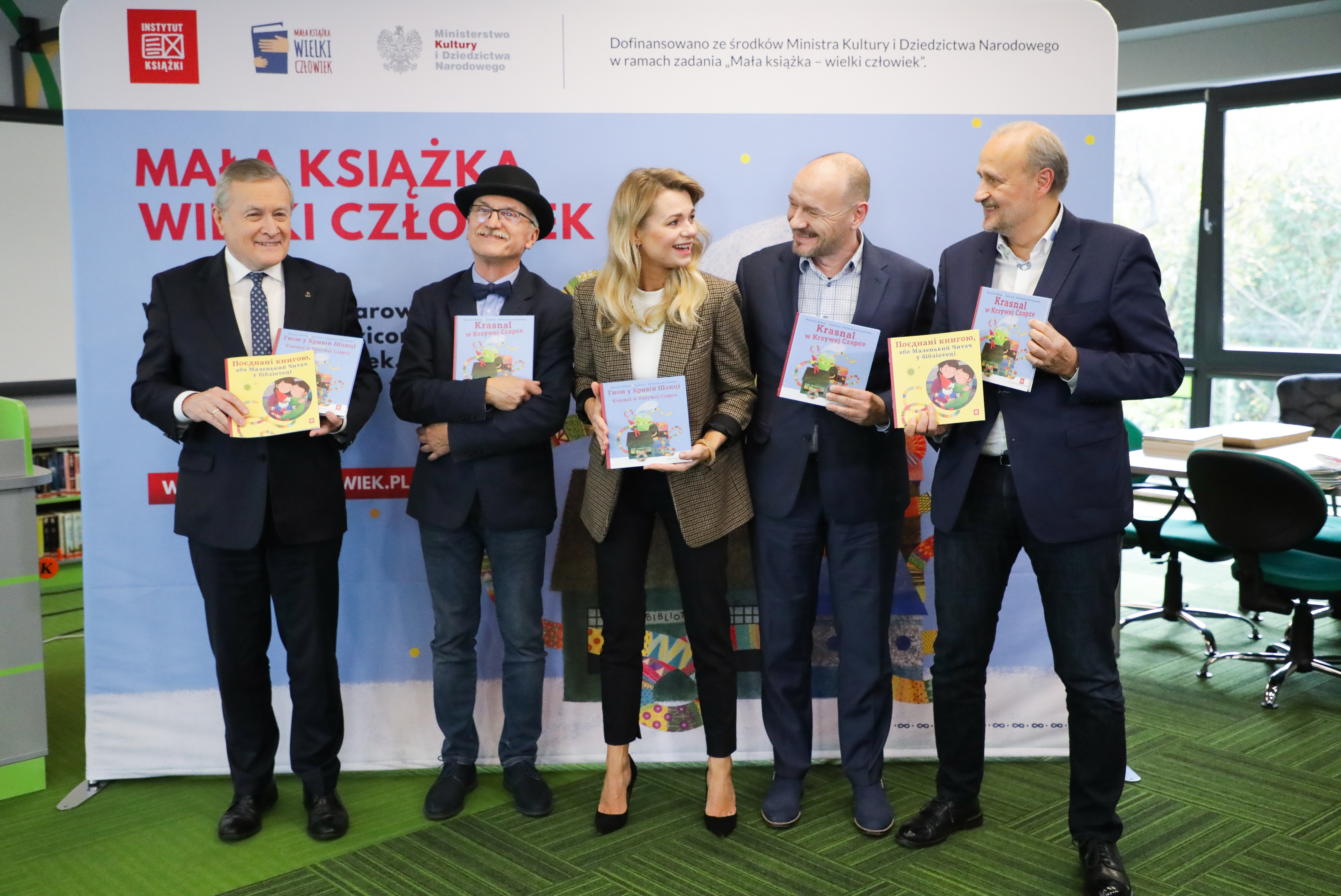 We wtorek 25 października w Multimedialnej Bibliotece dla Dzieci i Młodzieży nr XXXI w Warszawie odbyła się konferencja prasowa poświęcona nowej odsłonie kampanii „Mała książka – wielki człowiek”. Wzięli w niej udział prof. Piotr Gliński – wiceprezes Rady Ministrów, minister kultury i dziedzictwa narodowego, dyrektor Instytutu Książki Dariusz Jaworski, Wojciech Widłak – autor najnowszej książki wydanej w ramach kampanii, a także ambasadorzy kampanii Emilia Komarnicka-Klynstra i Redbad Klynstra-Komarnicki.