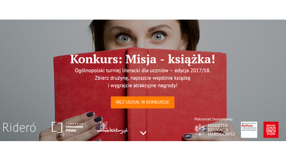 Instytut Książki objął patronatem Konkurs: Misja – książka!, czyli ogólnopolski turniej literacki, w którym kilkuosobowe zespoły uczniów szkół podstawowych (kl. VII) i ponadpodstawowych (II i III klasa gimnazjum oraz szkoły średnie) współzawodniczą ze sobą w tworzeniu własnej książki. W tym roku obowiązkowym motywem przewodnim jest DOM.