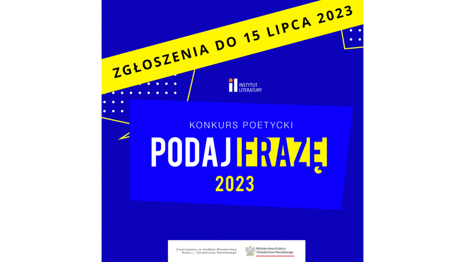 Instytut Literatury ogłosił drugą edycję konkursu poetyckiego „PODAJ FRAZĘ”. Konkurs jest skierowany do twórców między 16. a 35. rokiem życia. Pula nagród wynosi 10 000 zł. Zgłoszenia można przesyłać do 15 lipca 2023 roku.