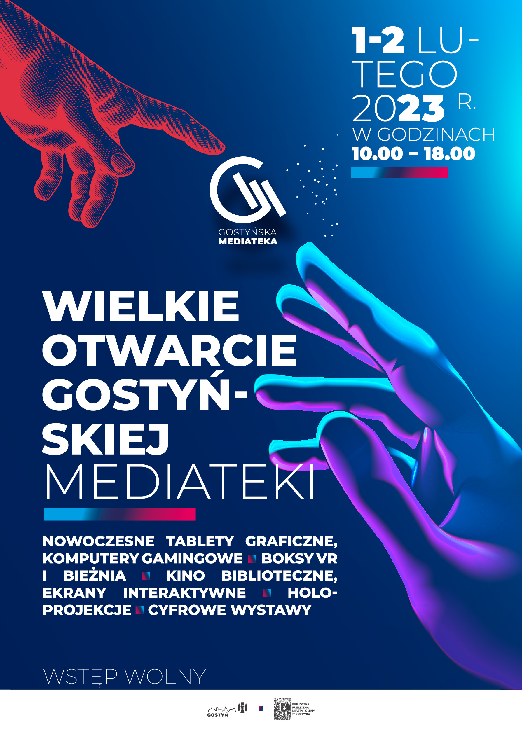Już 1 lutego o godz. 17.00 nastąpi uroczyste otwarcie Gostyńskiej Mediateki. Publiczności udostępnione zostaną tablety graficzne, stanowiska do wirtualnej rzeczywistości i gier komputerowych.