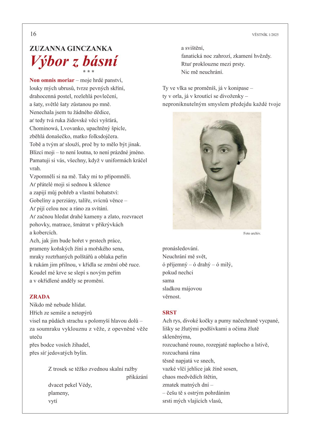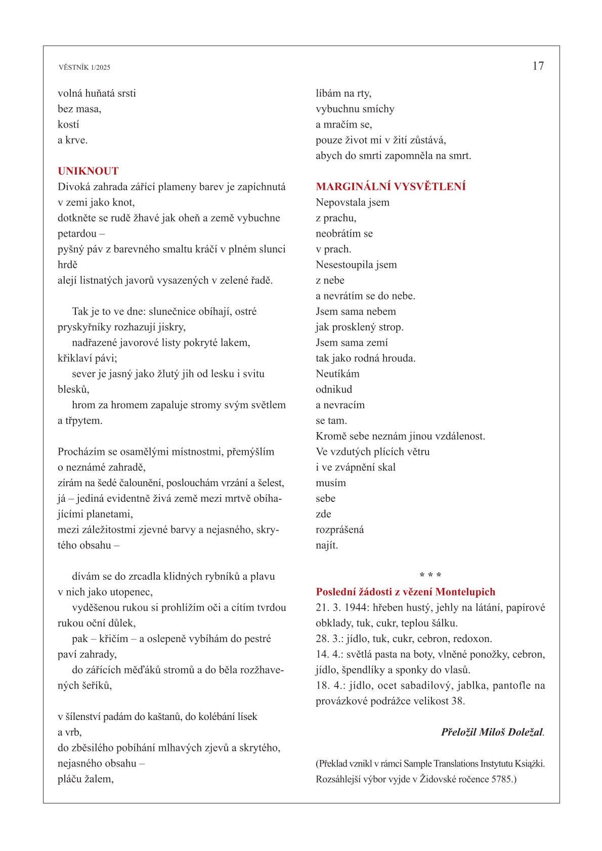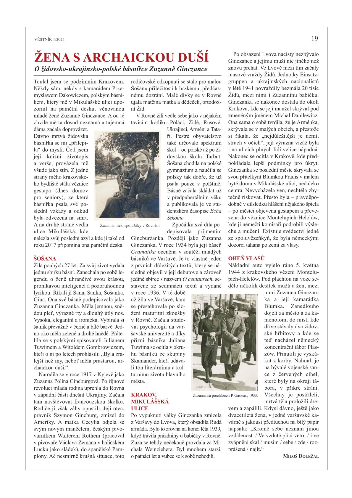 W ostatnim czasie tak stało się z wierszami Zuzanny Ginczanki, które polecamy w dorocznym katalogu Instytutu Książki „New Books from Poland”. Ukazały się w magazynie „Roš chodeš”. Przekładu na język czeski dokonał Miloš Doležal, tłumacz i znakomity poeta, laureat najważniejszej czeskiej nagrody literackiej Magnesia Litera.