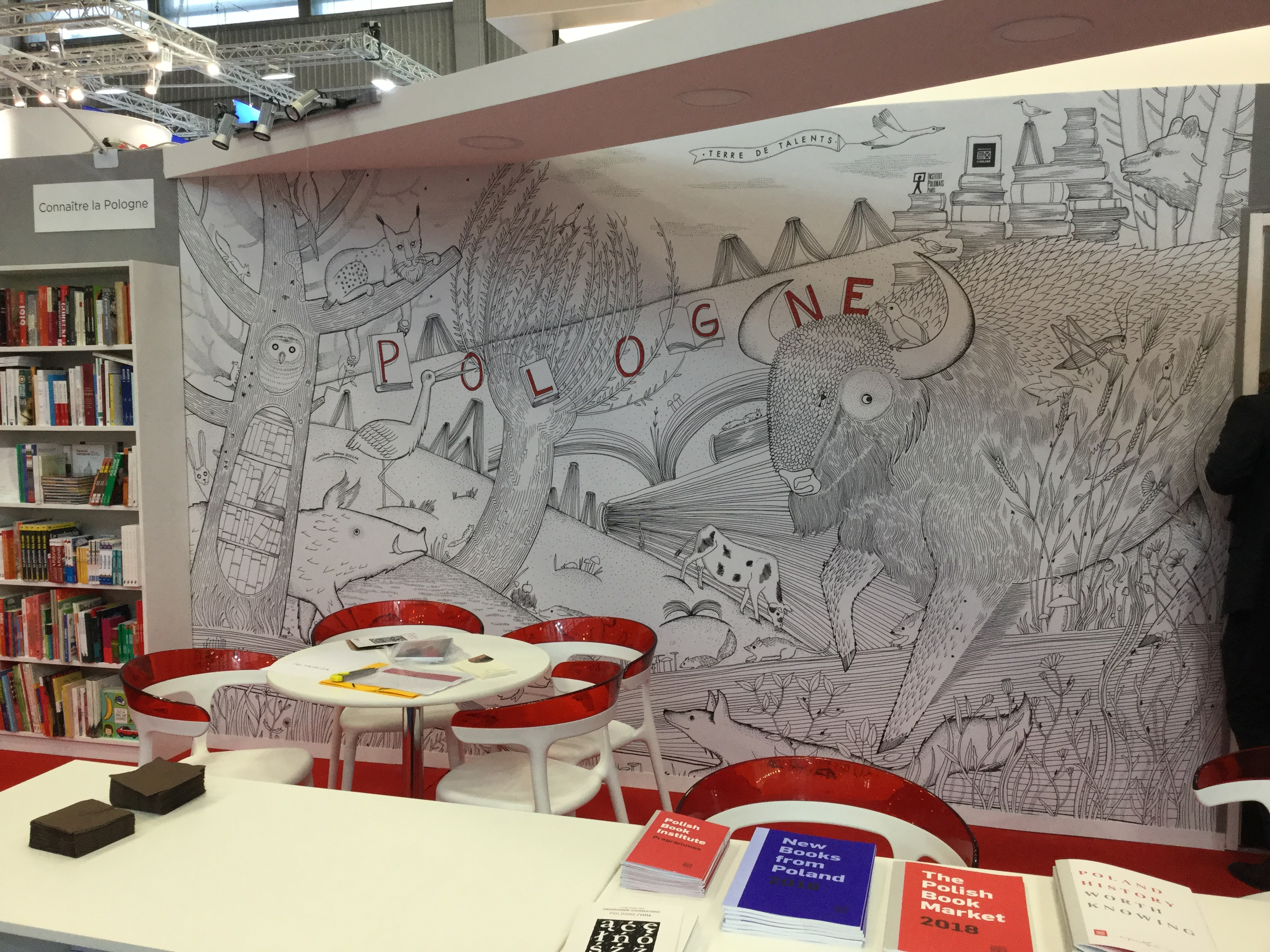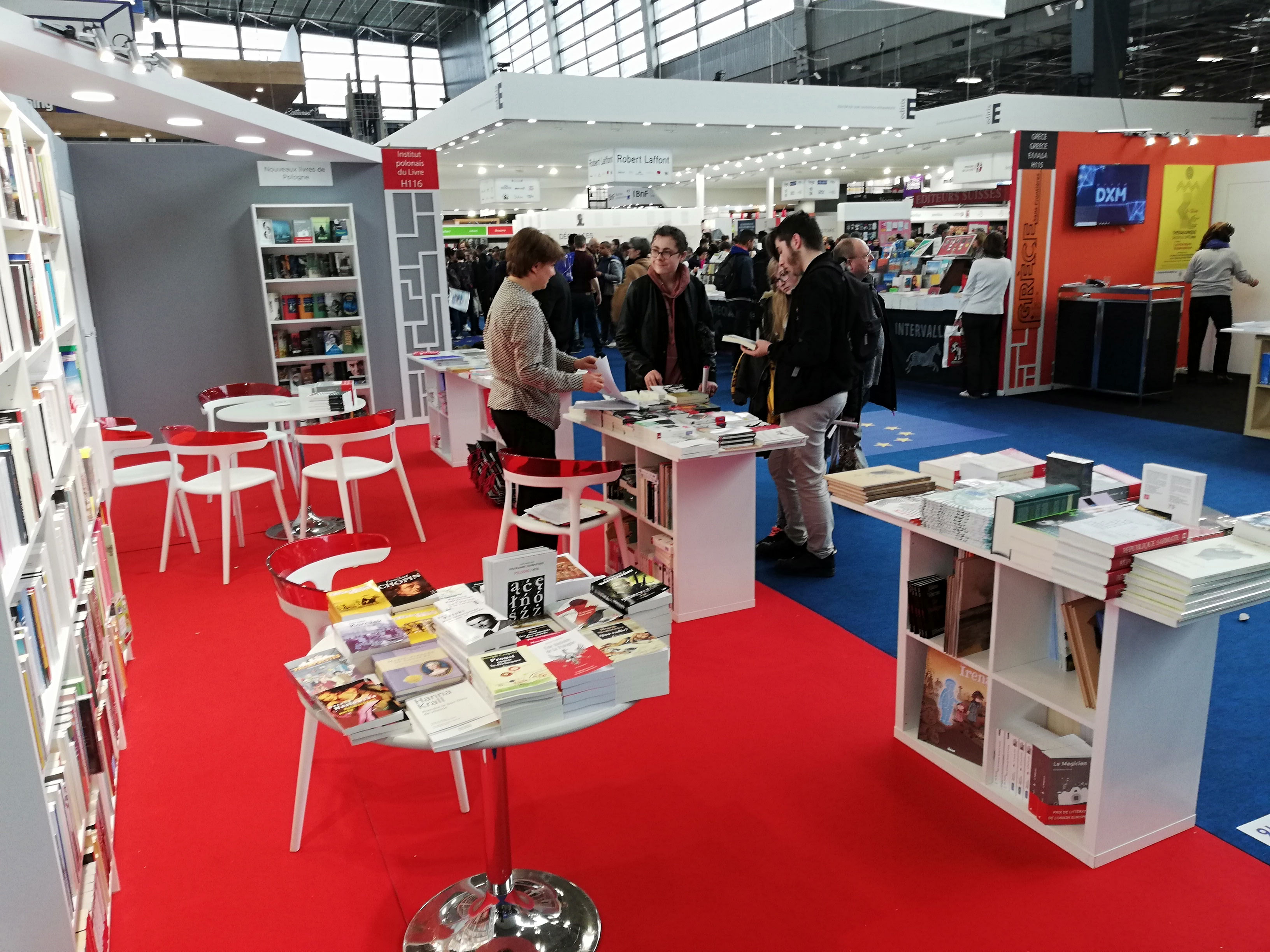 Na polskim stoisku w Paryżu prezentowane są książki z katalogu New Books from Poland. Przez cały czas Księgarnia Polska w Paryżu sprzedaje literaturę polską w oryginale i przekładach na francuski. Ozdobą stoiska jest mural zaprojektowany przez Joannę Rzezak. Odwiedzający polskie stoisko mogą także uczestniczyć w całym szeregu spotkań i dyskusji zorganizowanych przez Instytut Polski w Paryżu.