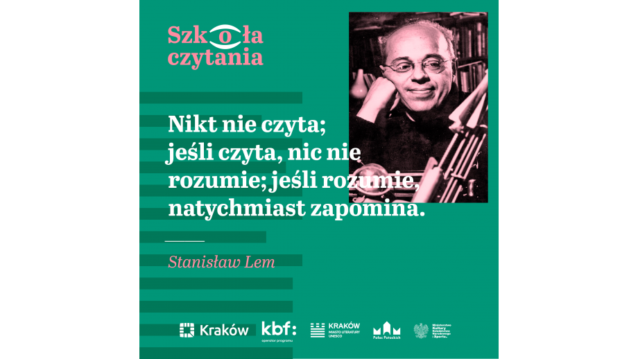 Szkoła Czytania Krakowa Miasta Literatury UNESCO to projekt dofinansowany ze środków Ministra Kultury, Dziedzictwa Narodowego i Sportu pochodzących z Funduszu Promocji Kultury.