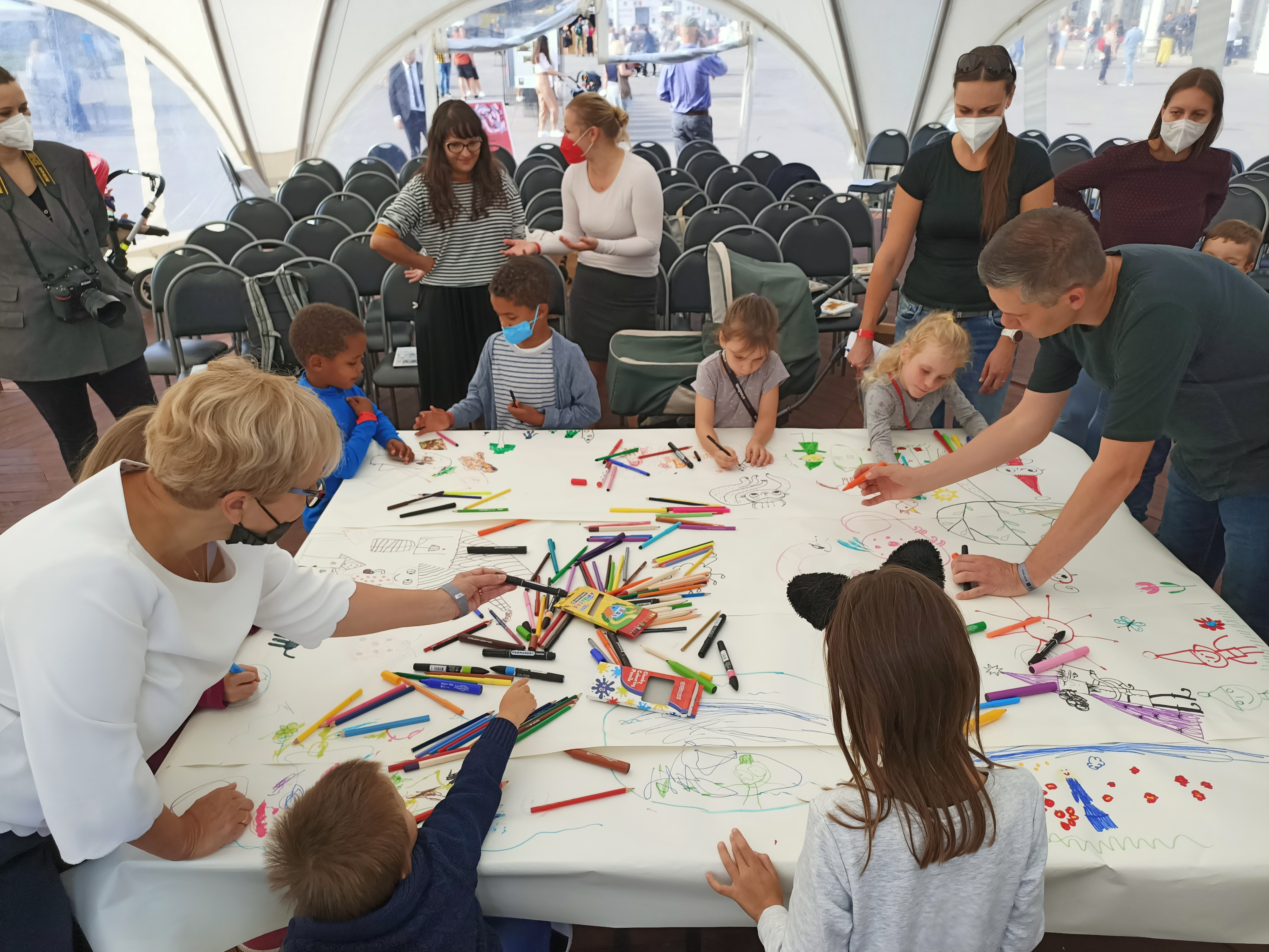 Na polską prezentację w ostatní dzień targowy złożyły się warsztaty dla dzieci prowadzone przez Macieja Szymanowicza, ilustratora takich hitów książkowych, jak „Rok w krainie czarów“, „Krasnoludki“ czy „Wielcy wynalazcy“. Młodzi uczestnicy warsztatów stworzyli wspólne dzieło plastyczne przedstawiające las pełen zwierząt i sympatycznych stworów.