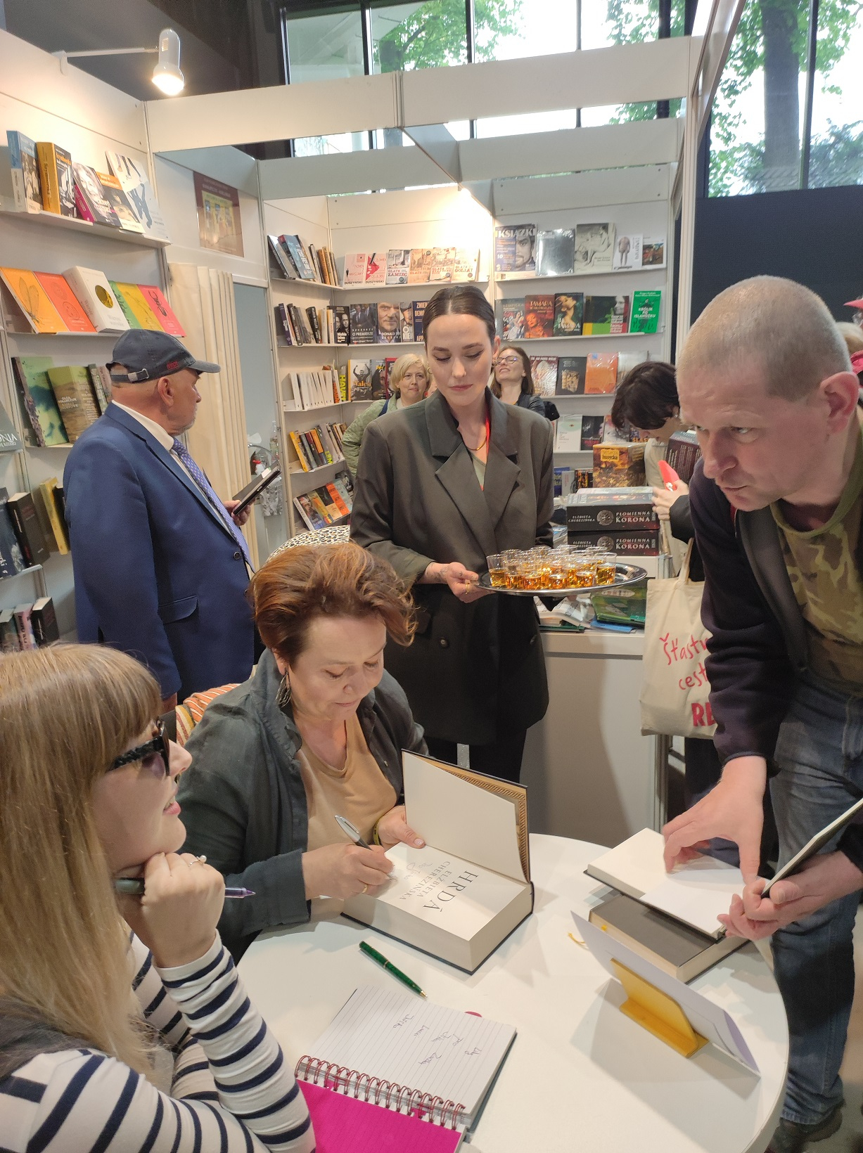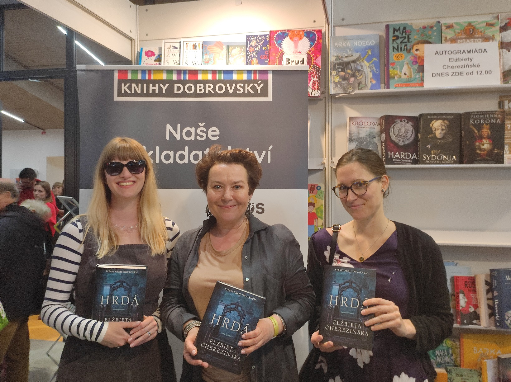 Polscy pisarze zaproszeni do Pragi podpisywali przetłumaczone na czeski książki, które przyciągnęły wielu zainteresowanych czytelników. Długa kolejka po autograf ustawiła się, gdy po spotkaniu autorskim (widownia wypełniona do ostatniego miejsca) zasiadła do stolika Elżbieta Cherezińska wraz z tłumaczką swoich książek Anną Šaškovą Plasovą. Dotąd ukazały się po czesku dwie powieści pisarki: „Harda” („Hrdá“, wyd. Kontrast 2022) oraz „Gra w kości“ („Hra o kosti“, wyd. Argo 2017). Wydanie tej drugiej było współfinansowane przez Instytut Książki w ramach Programu Translatorskiego ©Poland.