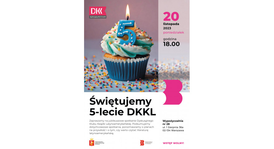 Działający w Bibliotece Publicznej w Dzielnicy Włochy m.st. Warszawy Dyskusyjny Klub Książki Latynoamerykańskiej kończy 5 lat. W poniedziałek 20 listopada o godzinie 18:00 odbędzie się jubileuszowe spotkanie klubu.