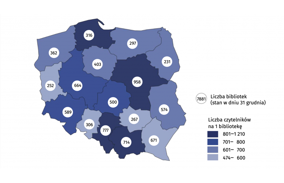Główny Urząd Statystyczny opublikował raport dotyczący funkcjonowania bibliotek publicznych w 2023 roku. Według stanu na koniec 2023 roku w Polsce działało 7 570 bibliotek publicznych i filii, które prowadziły 871 oddziałów dla dzieci i młodzieży oraz 751 punktów bibliotecznych. Biblioteki publiczne dysponowały księgozbiorem liczącym 124,3 mln woluminów, a łączna liczba 5,3 mln czytelników wypożyczyła prawie 100 mln książek. Najliczniejszą grupę użytkowników bibliotek stanowiły osoby w wieku 25-44 lata.