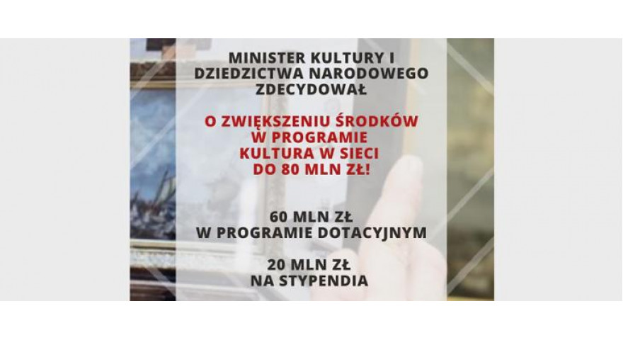 Narodowe Centrum Kultury rozstrzygnęło nabór do programu dotacyjnego Kultura w sieci, finansowanego ze środków Ministerstwa Kultury i Dziedzictwa Narodowego. 60 000 000 zł trafi do 1182 beneficjentów w całym kraju na wsparcie lokalnych inicjatyw w obszarze kultury i kontynuację działalności kulturalnej i artystycznej w sieci czasie epidemii koronawirusa. Zadania w ramach programu będą realizowane do 30 października 2020 roku. Wszystkie efekty działań dostępne będą za darmo w Internecie.w