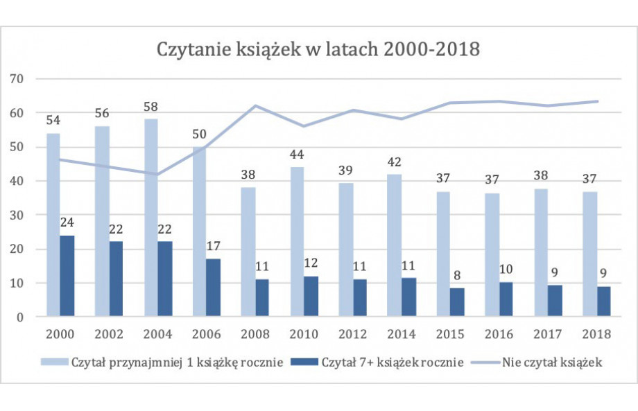 43% Polaków przeczytało w 2023 roku co najmniej jedną książkę, co stanowi wzrost o 9 punktów procentowych, najwięcej od 10 lat. Wzrosło także zainteresowanie bibliotekami, szczególnie u młodych mężczyzn w wieku 25–39 lat. Wpływ na ten wzrost niewątpliwie mają także działania, które w ostatnich latach prowadził Instytut Książki.
